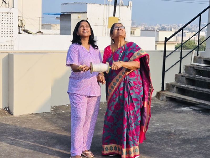 Padmaja and mother-in-law flying kite